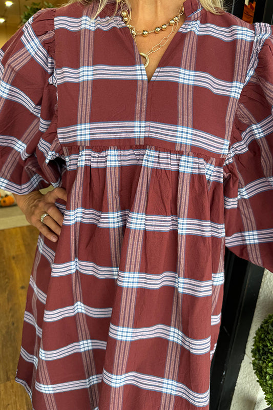 Casual Puff Sleeve Plaid Dress