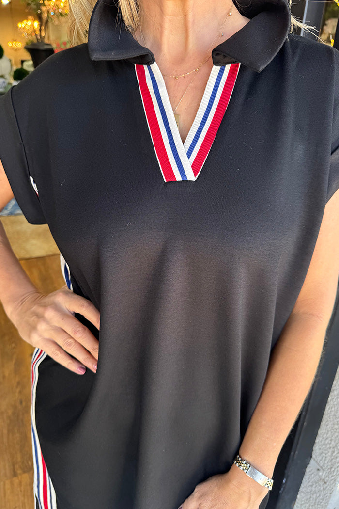 We're glad you've clicked on our new Black Contrast Trim Midi Dress as we're really into its casual vibes!Designed with a sporty edge, this dress combines comfort and confidence for everything from weekend adventures to casual outings. The sleek silhouette flatters while the breathable fabric keeps you cool and comfortable all day long.