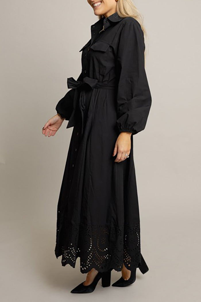 Black Eyelet Hem Pocketed Maxi Dress