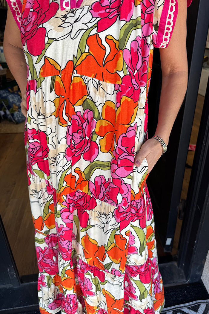 Floral Print Pocketed Midi Dress