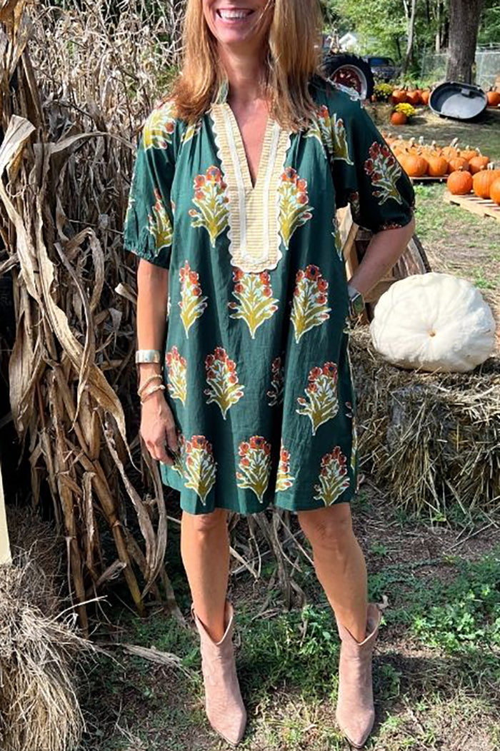 We're glad you've clicked on our new Floral Scallop Hem Dress as we're really into its casual vibes!Featuring a flirty v-neck and playful striped details that complement its cheerful floral print, this dress is designed to bring a splash of fun to any occasion. Perfect for adding a touch of whimsy to your wardrobe.