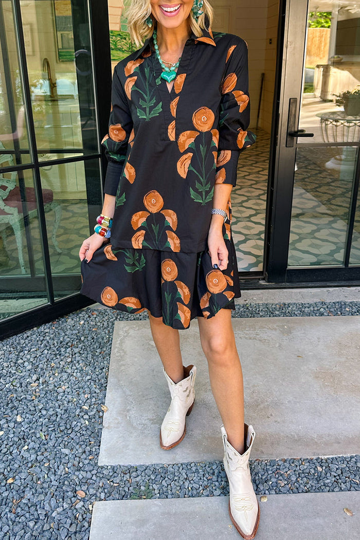 We're glad you've clicked on our new Floral V-Neck Ruffle Dress as we're really into its casual vibes!This Floral VNeck Ruffle Dress in black flutters with romantic charm and subtle drama. Her floral print, V-neckline, and ruffle details create a look that’s both playful and effortlessly feminine. She’s perfect for date nights, holiday parties, or weekend gatherings with friends. Pair her with heeled boots or strappy heels for a look that’s effortlessly flirty and on-trend.