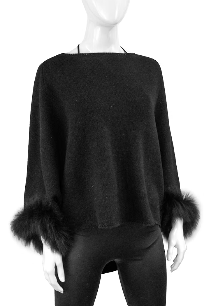 Fox Fur Trim Wool Poncho
