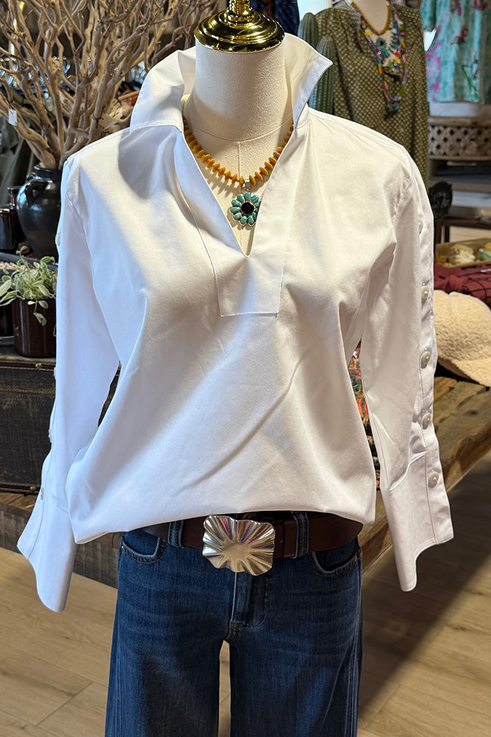 We're glad you've clicked on our new French Cuff Buttoned Sleeve Top as we're really into its casual vibes! The unique design makes this a great choice for any stylish girl.