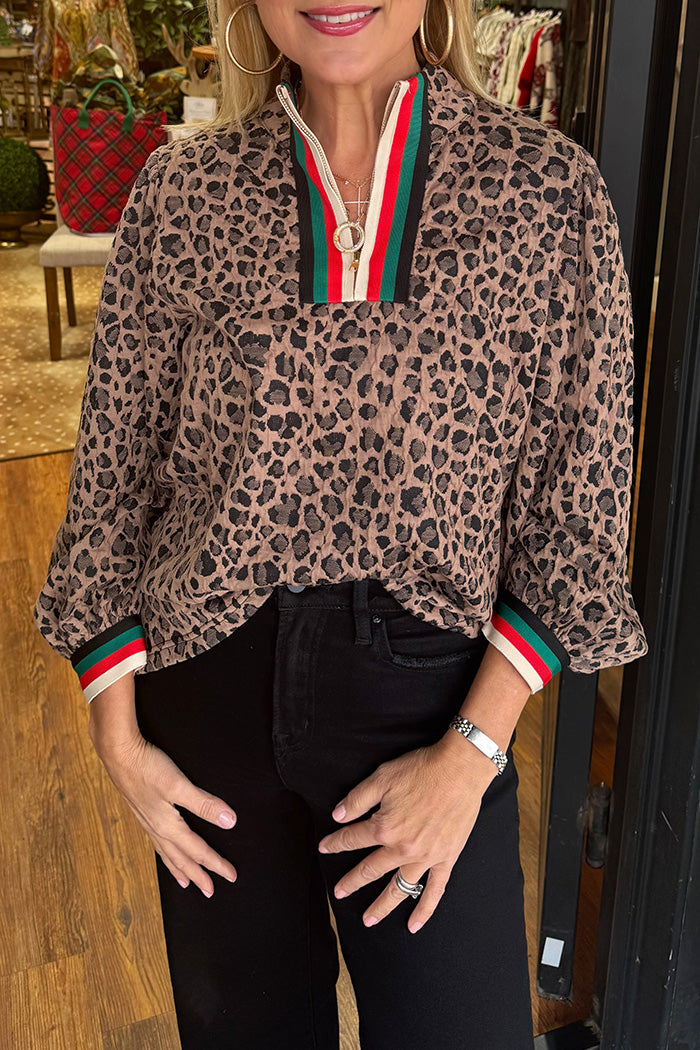 Leopard Print Stripe Trim Top