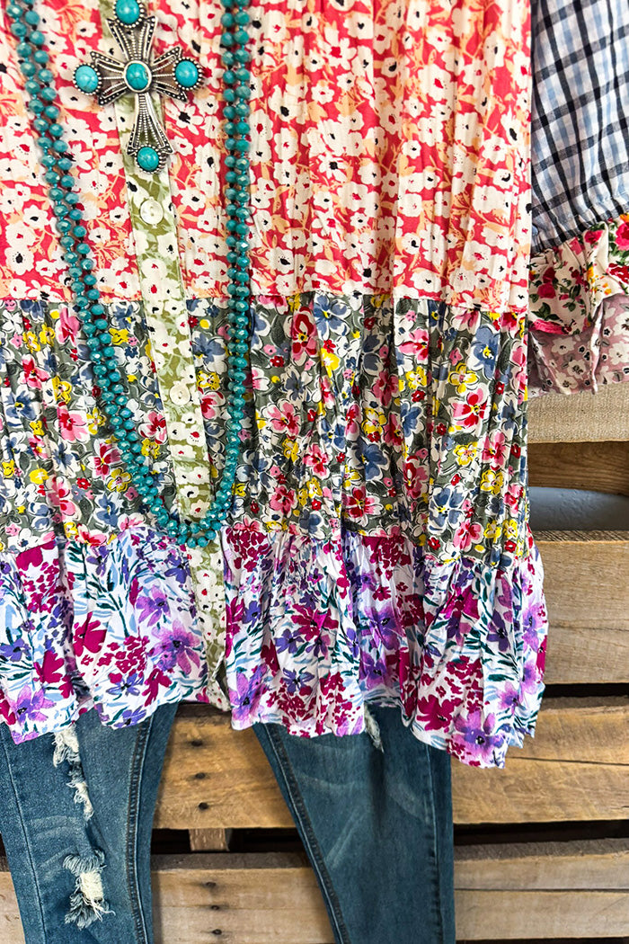 Mixed Print Patchwork Tiered Ruffle Tunic