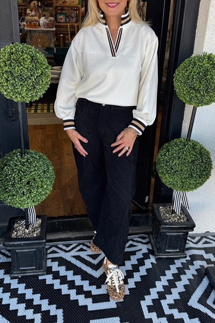 Mock-Neck Striped Trim Pullover Top