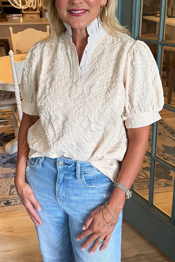 We're glad you've clicked on our new Pleated Collar Puff Sleeve Top as we're really into its casual vibes! Made with high-quality material, it offers both comfort and style. Â Elevate your look with this versatile top and add a touch of elegance to any outfit.