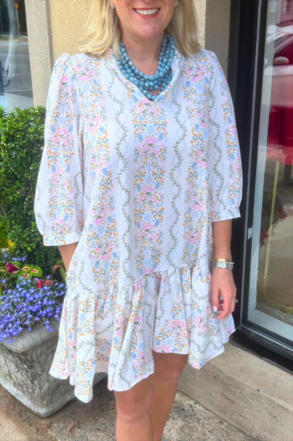 We're glad you've clicked on our new Pleated Hem Pocket Dress as we're really into its casual vibes!The best-selling Dress is back in stunning transitional sprint to fall print! Wear it now or later getting long lasting use out of this precious dress!