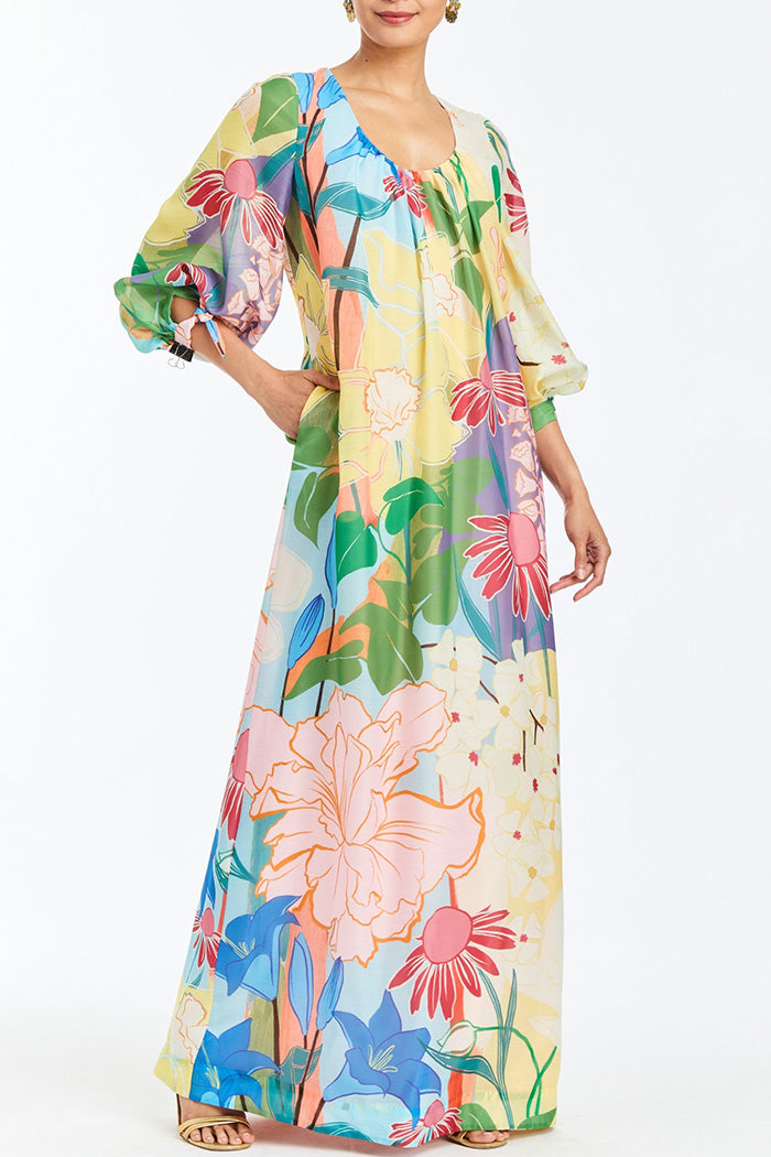 Puff Sleeve Floral Pocket Maxi Dress