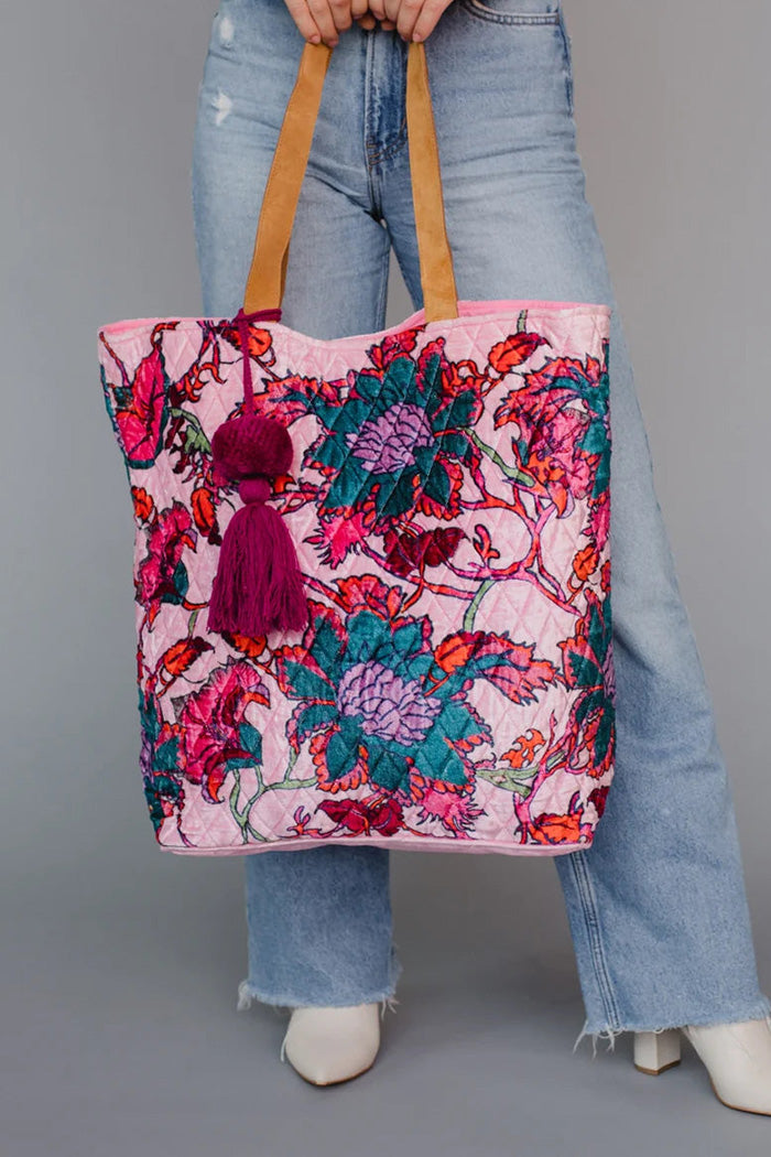 Quilted Floral Tassel Tote