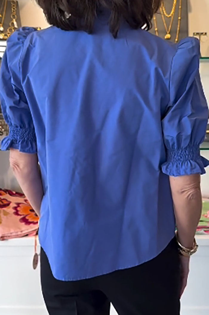 Solid Ruffle Button Top