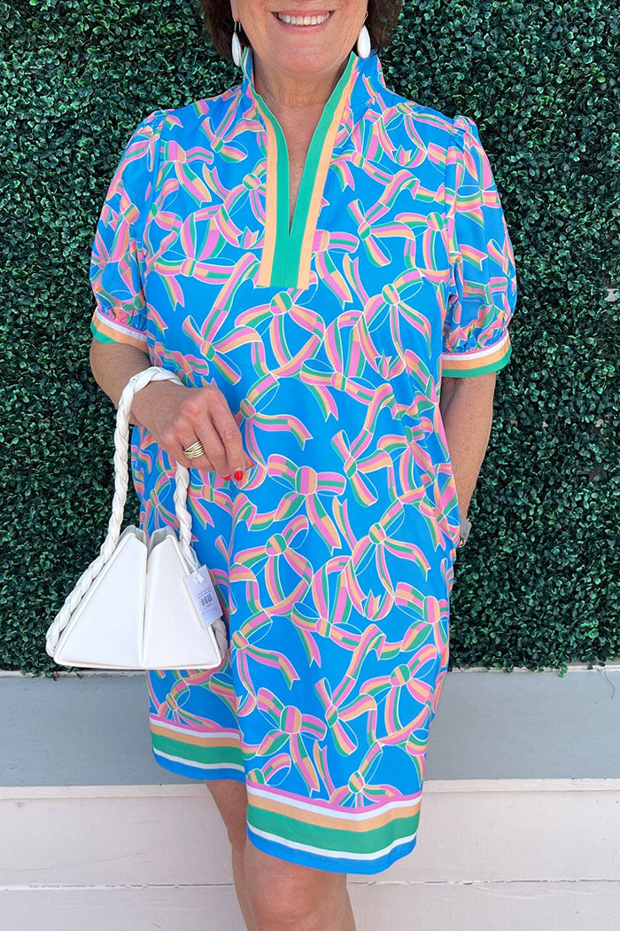 We're glad you've clicked on our new Stripe Trim Bow Print Pocket Dress as we're really into its casual vibes! The Ruffle Collar make this a great choice for any stylish girl.