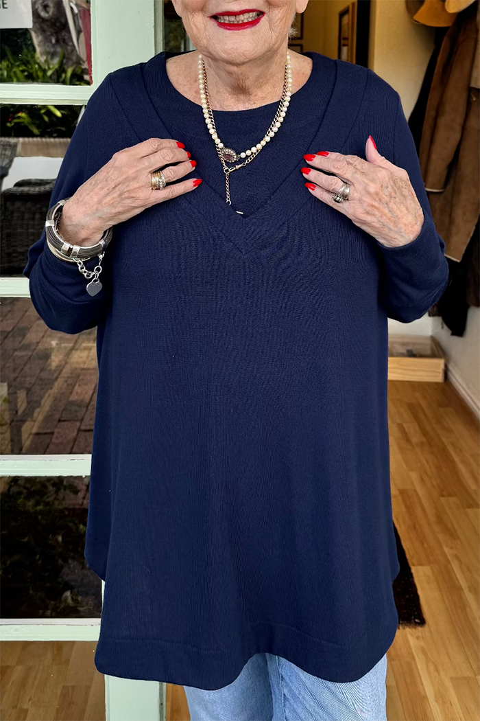 We're glad you've clicked on our new The Double Neck Top as we're really into its casual vibes!Rayon with a bit of poly to keep it's shape. Looks as if it's a jersey over a jersey but in fact it's simply a hidden piece. Packs well, so perfect for weekends away. The price is good so get one in every colour.
