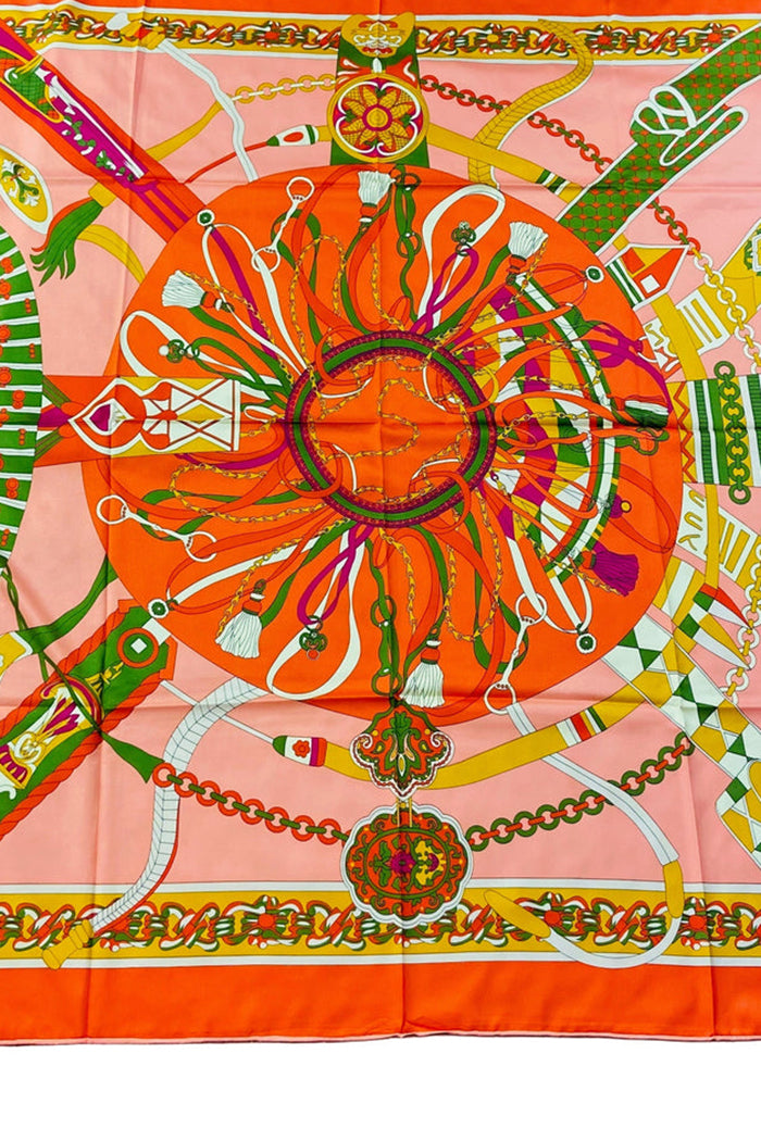 We're glad you've clicked on our new Vibrant Boho Print Square Silk Scarf ! A square silk scarf with vibrant, eclectic patterns in shades of orange, pink, green, and more, featuring an artistic, bohemian-inspired central design and intricate detailing throughout.